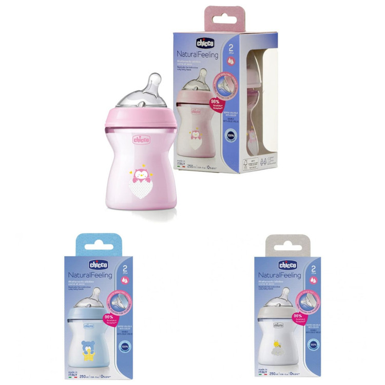 شیشه شیر چیکو مدل Natural Feeling ظرفیت 250 میلی لیتر chicco طلقی مناسب 3 ماه به بالا