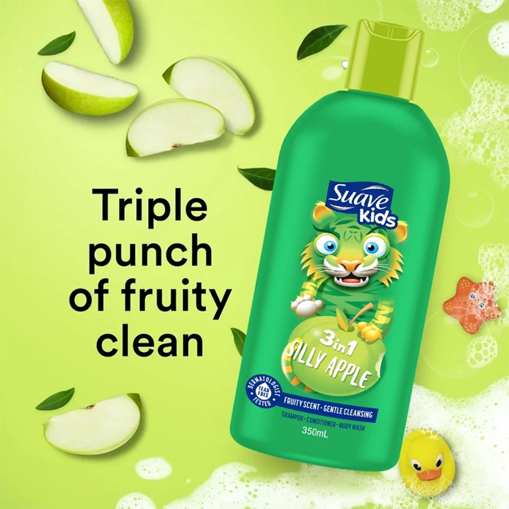 شامپو و نرمکننده ۳ در ۱ کودک Suave Kids 3in1 Silly Apple یک انتخاب ایدهآل برای شستشوی روزانه کودکان است.