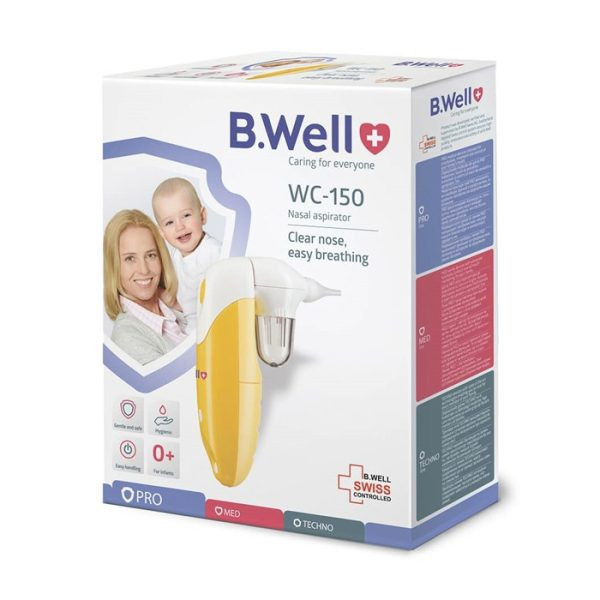 تمیز کردن مخاط بینی کودکان در سنین پایین گاها بسیلر دشوار می باشد. از این رو استفاده از دستگاه های تمیز کننده بینی راه حلی مناسب برای رفع این مشکل می باشد. تمیز کننده بینی B.WELL مدل WC-150 ساخت سوییس یکی از بهترین و پر فروش ترین محصولات موجود در بازار می باشد. این دستگاه دارای طراحی بسیار زیبا و شکیل جهت استفاده بهتر می باشد. همچنین این دستگاه در زمان استفاده 12 آهنگ مشهور کودکان را نیز پخش می کند که موجب احساس راحتی بیشتر کودک می شود