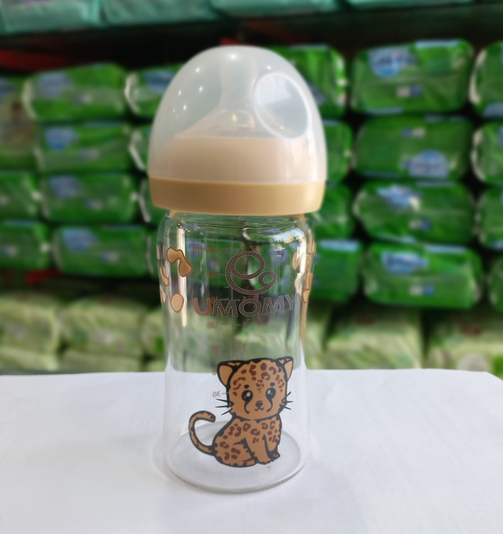 جنس پیرکس مقاوم در برابر شوک های حرارتی و شعله مستقیم مناسب برای سنین 12 ماه به بالا سرشیشه 100٪ سیلیکونی دهانه عریض و ضد نفخ فاقد هرگونه مواد سمی و مضر شستشوی آسان 0٪BPA 0٪PVC با طرح پیروز ، یوز ایرانی طراحی سر شیشه شبیه سینه مادر